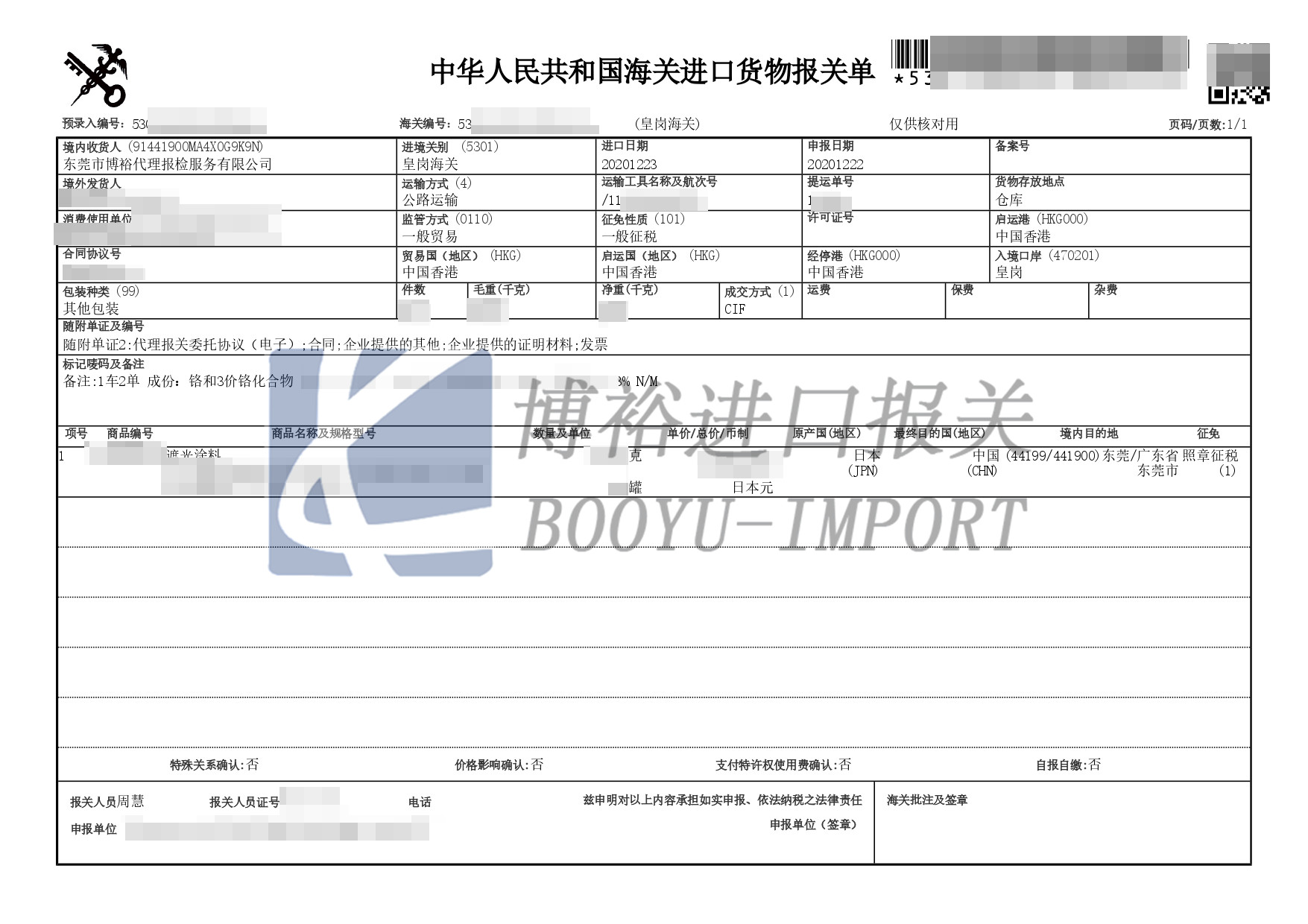 6、《進口油漆涂料存案書》僅限于遮光涂料進口報檢時運用,已存案的《進口涂料存案書》對各入境口岸均有用。進口涂料報檢時,已存案的應一起提交《進口涂料存案書》,口岸查驗檢疫組織采取核對貨證、檢查查驗的方法;